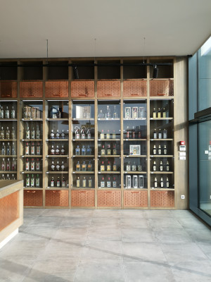Jedna z našich ostatných realizácií pre klienta Old Herold. V tomto prípade sme mali pri zadaní dostatočne voľné ruky a mohol vzniknúť krásny a reprezentatívny priestor na predaj exkluzívnych produktov tejto domácej značky. Pri premýšľaní nad dizajnom interiéru nových priestorov sme chceli vychádzať z procesu destilácie. Pri výbere materiálov použitých v dizajne interiéru sme sa inšpirovali v pálenici, materiálmi použitými pre destilačné prístroje. Pri drevených prvkoch pultu a regálov sme použili masív dubu v odtieni tabakový dub. Všetky doplnky interiéru sú vyhotovené z medi, pričom vzor výsekov vychádza z vydareného dizajnu fľaše Borovička Juniperus.